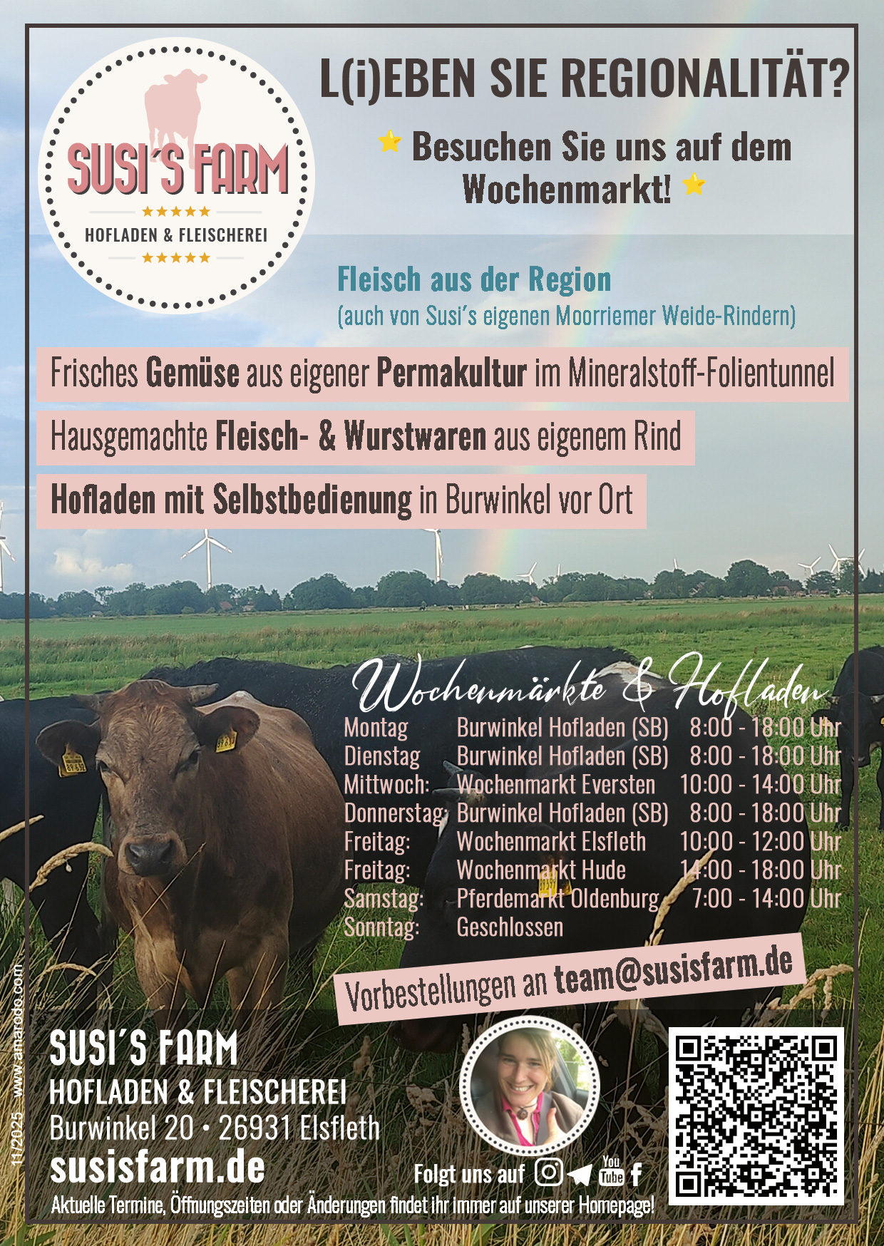 Besucht uns einfach auf den Wochenmärkten (Hude, Elsfelth und Oldenburg Pferdemarkt) und lasst euch von den leckeren Sachen, die bei uns zu bekommen sind, begeistern. Und schaut unbedingt in unseren Weihnachtsflyer!