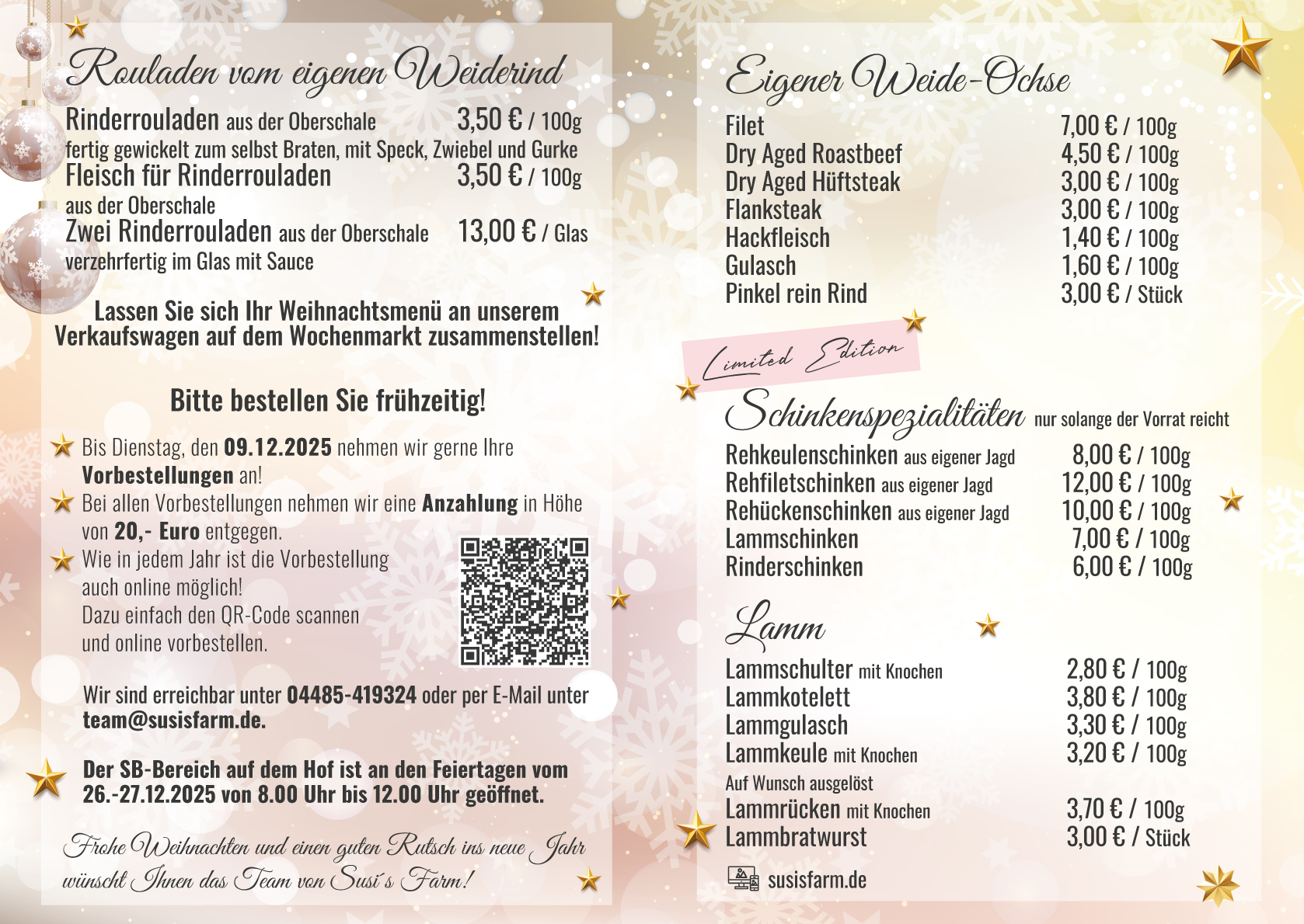 Weihnachten bei Susi‘s Farm – Jetzt bestellen & Flyer abholen!