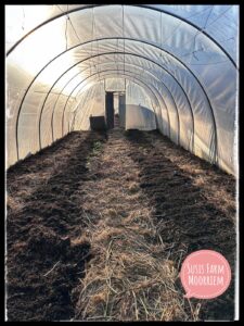Eine der eindrucksvollsten Aufgaben, die unsere Hühner übernehmen, ist die Pflege und Reinigung unserer Gewächshäuser. Was einfach klingt, ist in der Praxis ein ausgeklügeltes, komplex entwickeltes System. Und hier ist es von mir (Susi) auf unseren Hof angepasst worden.