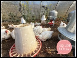 Wenn du ein Huhn von Susi’s Farm kaufst, kaufst du kein gewöhnliches Fleisch. Du kaufst das Ergebnis unseres Systems, das funktioniert, weil wir es auf Respekt, Verständnis und Kreislaufdenken aufgebaut haben. Du kaufst ein Tier, das Arbeit kannte, das Sonne kannte, das Insekten jagte, Erde aufkratzte und bei uns Teil von etwas Lebendigem war.